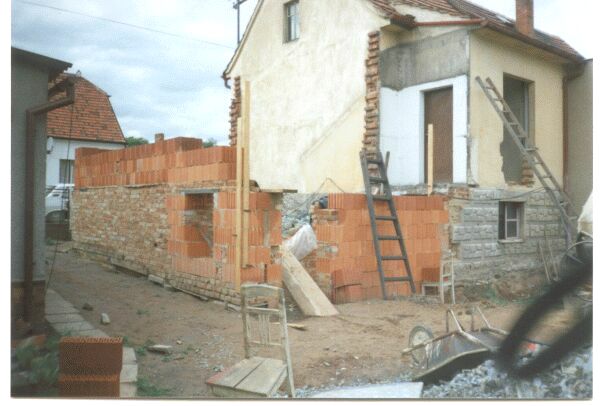 no a tady to už vypadá jako na stavbě. žebřík a štafle stojí na schodišti, které tady není ještě ani v náznaku.