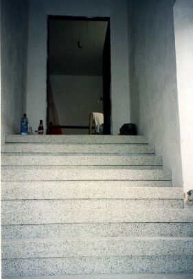 tyhle schody vedou od vstupních dveří a jsou pekelně těžké, až spadnou, tak budu raději lézt po žebříku, než abych znovu stavěl něco podobného